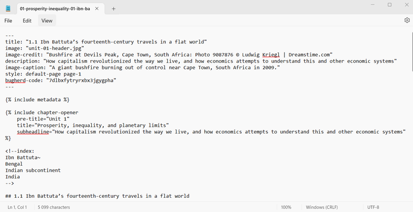 The markdown files that contain the content of The Economy 2.0 also include various coding syntax and pieces of code, which are used to format the content.