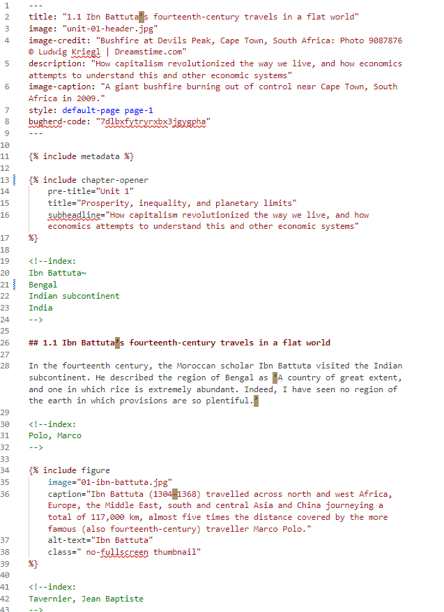 | Bibliography | All references appear at the end of each volume, in the bibliography (example). The references section for each unit (example) is auto-compiled from this bibliography file. |