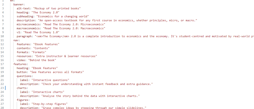 | Landing page | Users will be able to toggle to a version of this page in their language when visiting core-econ.org/the-economy/. | YAML file |