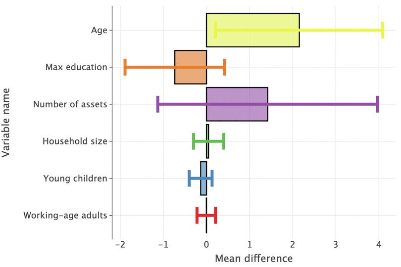 hhsize,gender,age,young_children,working_age_adults,max_education, andnumber_assets. (You may find it helpful to refer to Python walk-through 2.7 in Empirical Project 2 for one possible format to use.)
