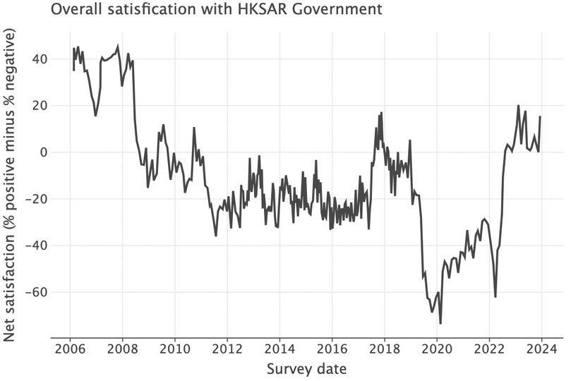 One possible reason why the government implemented Scheme $6,000 was to gain public approval, since there was some pressure on the government to spend the surplus on alleviating current social issues rather than reinvesting it (for example, in pension schemes). We will use a public opinion poll conducted by the University of Hong Kong to assess whether this scheme could have improved public satisfaction with the government.