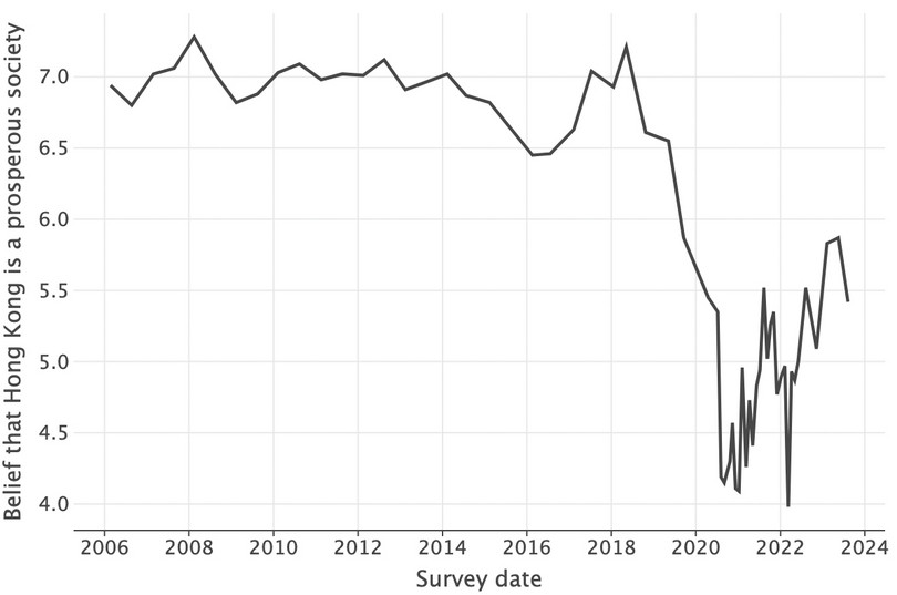 Prosperityvariable is measured on a 0–10 scale, where higher numbers indicate stronger beliefs that Hong Kong is a prosperous society.![]()